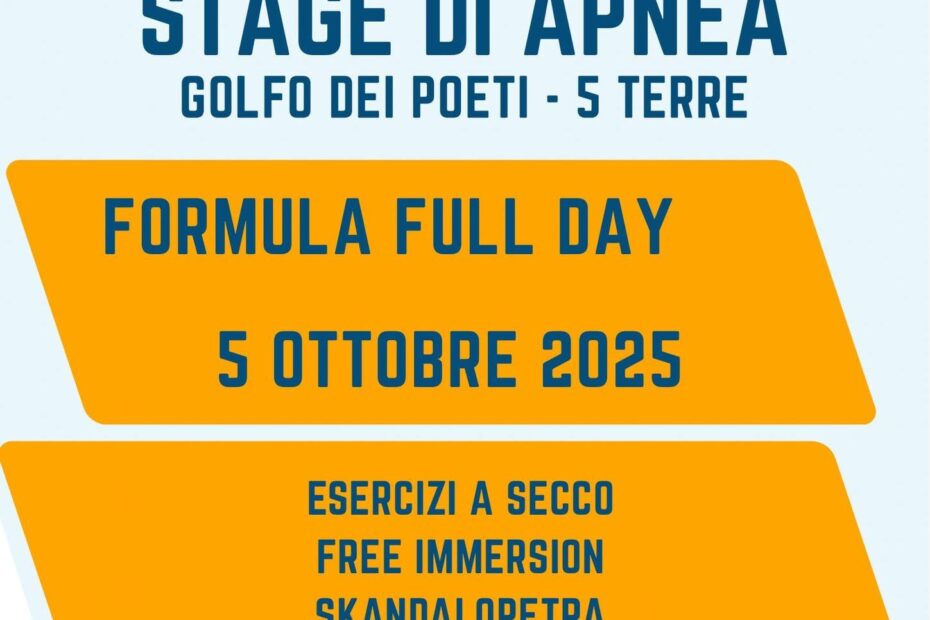 Una giornata dedicata all’apnea spaziando dagli esercizi a secco fino a provare la skandalopetra Programma 8.30: arrivo partecipanti 8.45 – 9.30: briefing e stretching respiratorioLeggi tutto »05 Ottobre: Stage di apnea